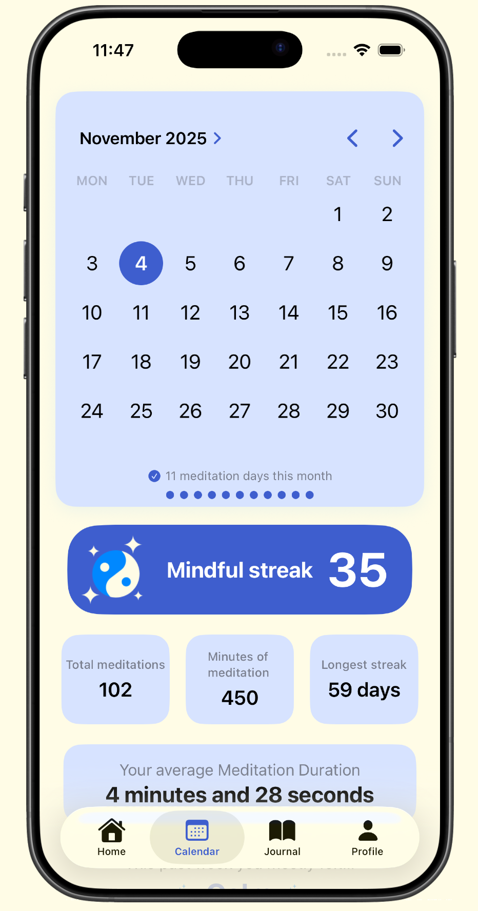 Soon you’ll be able to keep a personal mindful journal, integrating reflections and thoughts with your meditation sessions. Your personal growth journey, all in one place.